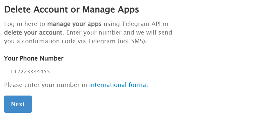 در ابتدا از طریق لینک زیر وارد سایت رسمی حذف اکانت تلگرام شوید.